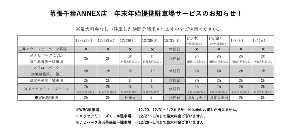 ※月曜日は、幕張千葉ANNEX店 休館日に準じて営業