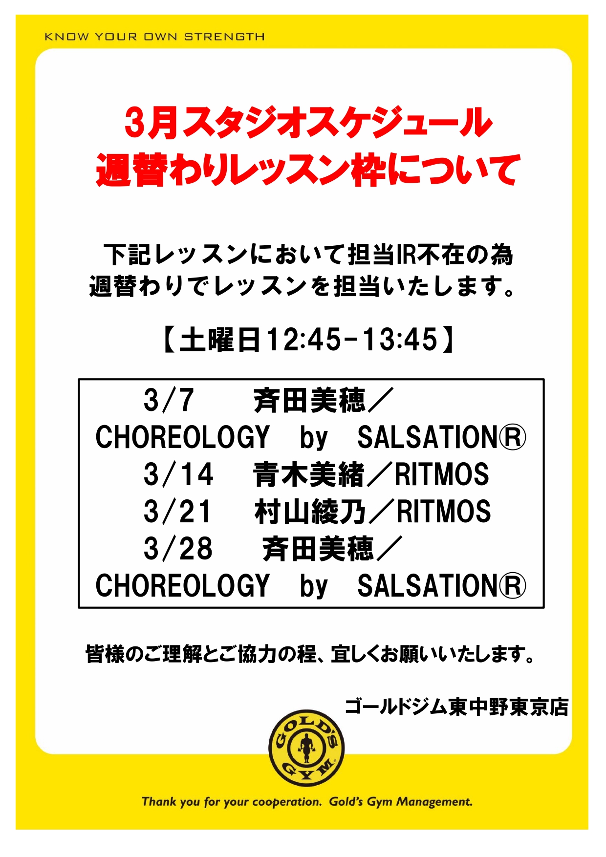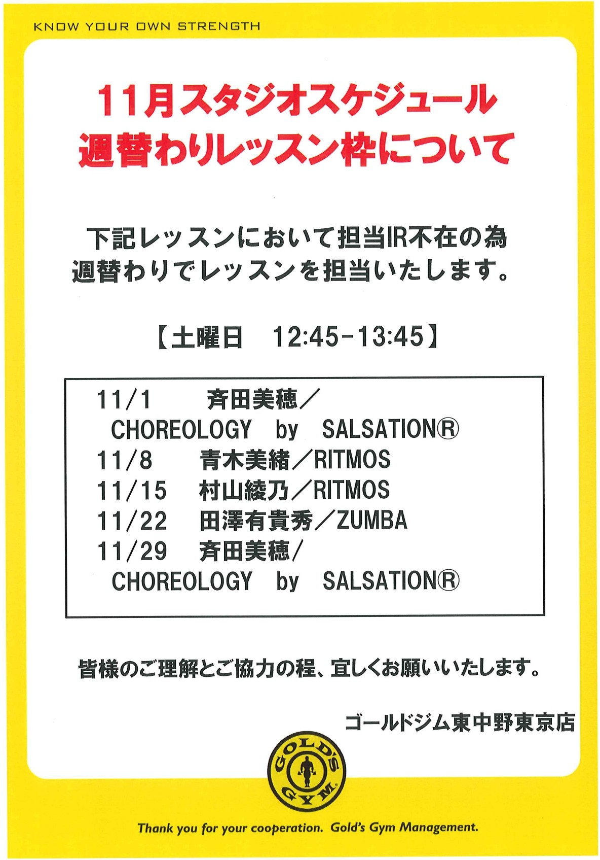 スタジオレッスンのWEB予約システム一部ルール変更のお知らせ|東中野
