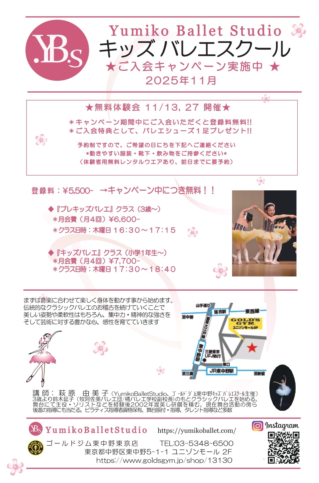 キッズバレエスクール 11月キャンペーン|東中野東京