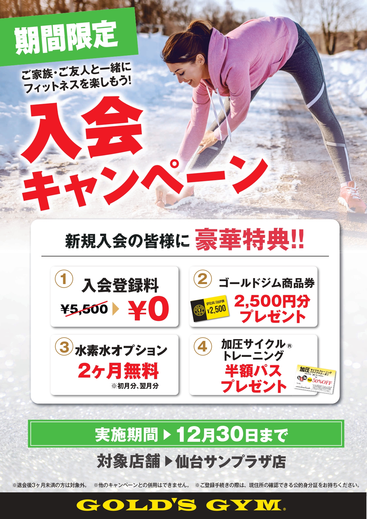 12月再入会カムバックキャンペーン実施中!|仙台サンプラザ
